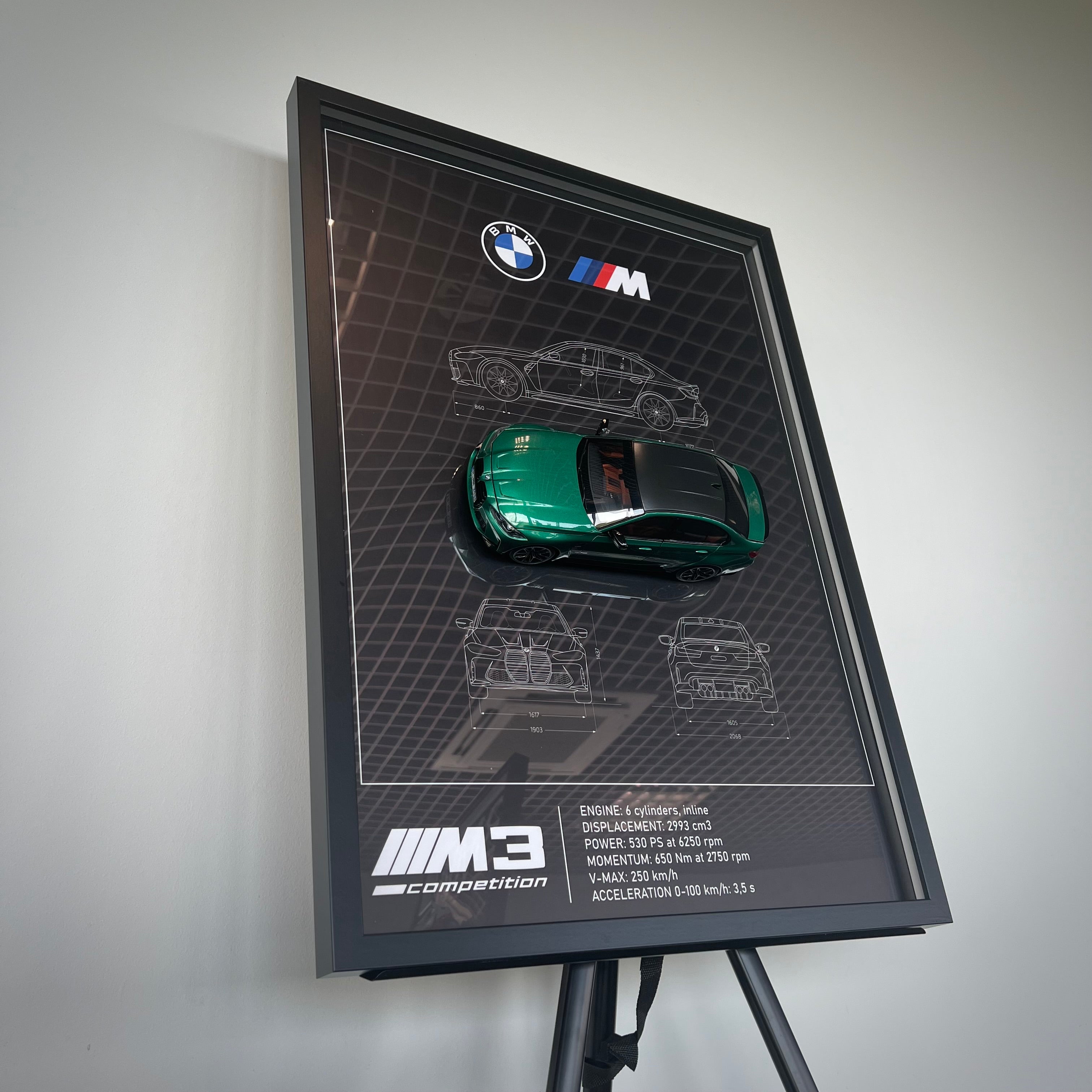 BMW M3 Competition G80 - Plakat 50x70 z modelem